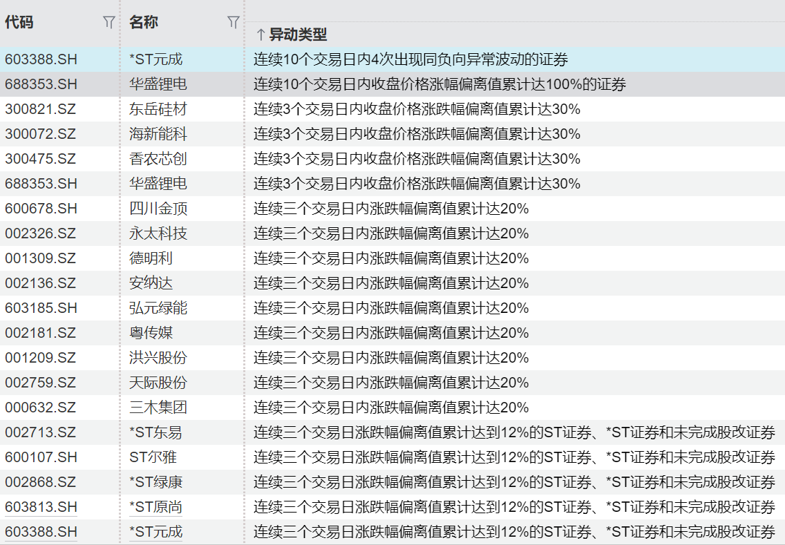 连续异动个股一览连续异动个股一览