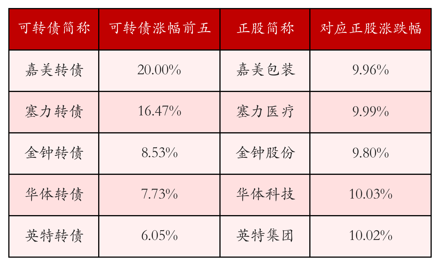 南财智讯12月18日电杠杆股市配资平台,南财金融终端盘后数据显示,债市方面,中证转债指数收涨0.06%,报483.43,成交额为639.06亿元。可转债方面,今日共成交384只可转债,其中杠杆股市配资平台253只收涨,0只收平,131只收跌。具体来看,21只可转债涨幅超过2%。其中嘉美转债(127042)涨20.0%,塞力转债(113601)涨16.47%,金钟转债(123230)涨8.53%。今日有17只可转债跌幅超2%,大中转债(127070)跌6.23%,能辉转债(123185)跌4.48%,环旭转债(113045)跌4.47%。存在交易量的可转债所对应的正股中,216只收涨,11只收平,157只收跌。具体来看,19只可转债对应正股涨幅超过5%,其中,漱玉平民(301017)涨停,收涨20.03%。同时所对应的可转债:漱玉转债(123172)同涨5.23%。今日有3只可转债对应正股跌幅超过5%,没有正股跌停。