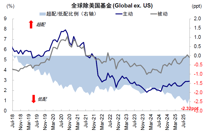 图表:但主要投向全球除美国市场的外资,其对中国资产的低配幅度甚至在加大