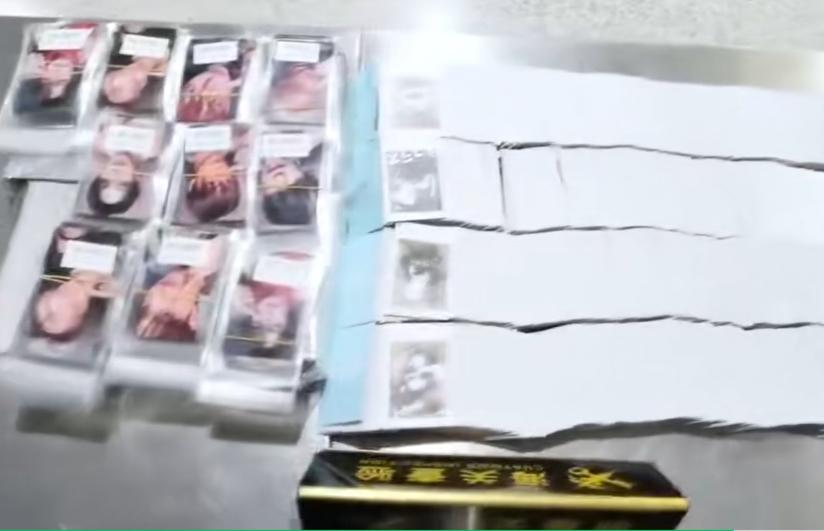经现场关员开箱查验,在其行李箱内发现分装成袋的明星照片卡9353张。目前,海关已按规定将上述物品暂扣。
