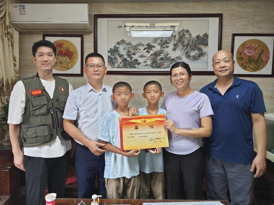“收到孩子的立功喜报,我们全家激动得不知说什么好,心里满满都是骄傲!”陈逸勋的父亲喜悦之情溢于言表,“更让我们欣慰的是,这份荣耀点亮了两个弟弟心中的梦想!”他指着身旁的两个孩子,声音里带着自豪,“瞧,他们抢着说,‘长大也要像哥哥一样去当兵!’一个要当海军,一个要当空军!这喜报啊,是‘八一’建军节送给我们家最厚重、最有意义的礼物!”