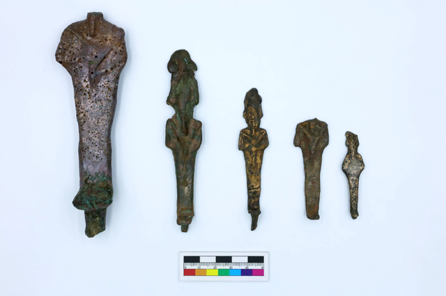 其二,挖出的五件袖珍型青铜神像,做工粗糙,没有什么精美可言,远不如西方“发现”的古埃及青铜器。问题是,三件青铜神像的时间,相当于中国战国时期,但战国时期的青铜神像就这样的水平吗?而且,奥西里斯是古埃及重要的神王,何以造的如此粗糙?